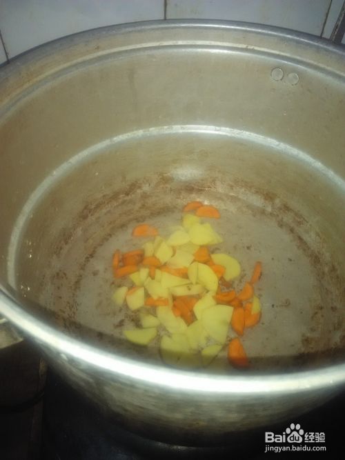 准备一口锅。填入适量凉清水。再将胡萝卜片,地瓜块和土豆片都放入锅里。等将它们都煮熟了后,再放入剩大米饭。等水再开了!关火!盛碗!吃饭了!