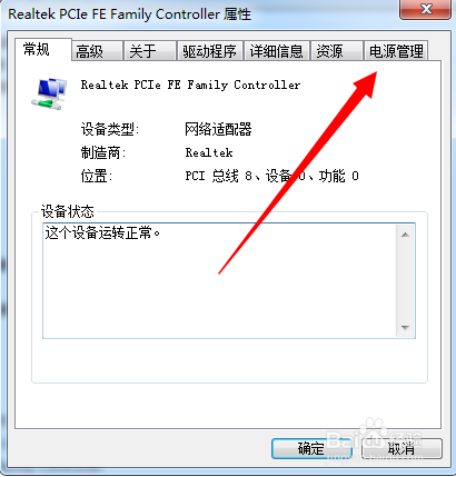 进入网卡驱动属性界面,点击上方菜单栏处【电源管理】选项