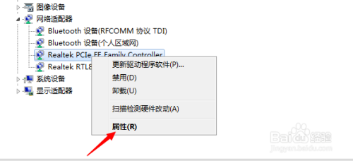 在网卡列表中,右键点击当前使用的网卡,选择【属性】选项