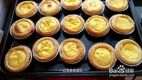 一切准备就绪后,我们就可以把蛋挞放入烤箱里面烤了。
