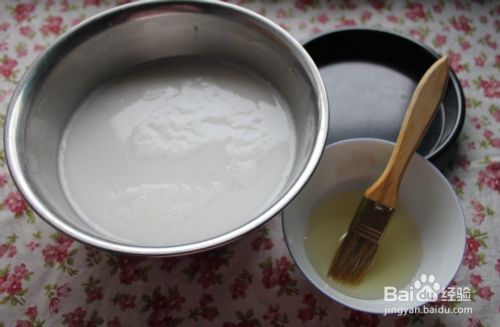 刷子沾一点玉米油,给披萨盘均匀刷上油,要一勺面粉淀粉,让披萨盘均匀沾着,放入水开的锅里,隔水加热,用锅盖焖一会儿(大约3分钟到5分钟左右),由热水里面拿出来,放冷水里隔水泡一泡,用冷水降温,然后就可以撕出一张完整的凉皮了。注意,冷水隔水降温是关键。