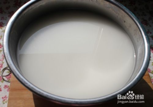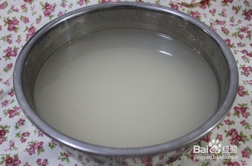 沉淀好的洗面团水表面颜色比较浅,把表面的水到掉,留下沉淀物,但是表面的水不要倒得太彻底,留一些与沉淀的淀粉混合,要不沉淀的淀粉就太浓了。