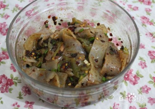 把做好的凉皮加入红油,糊辣椒,葱花,盐,酱油,醋,花椒油拌匀就是一个好吃的凉拌菜了。