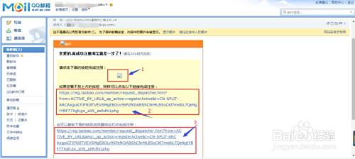 在收件箱里查收邮件,根据邮件内容提示完成注册,图中所标1、2、3处三者选一完成注册