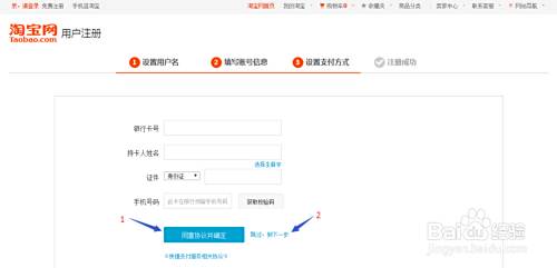 ① 如果想要立即设置支付方式,请根据页面提示完成内容填写,点击1处,跳到下一步