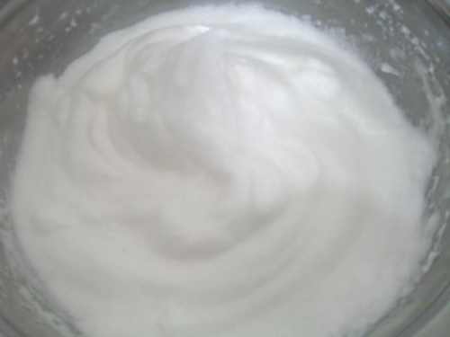 10打发蛋白,蛋白先加入一小半糖打至粗泡,第二次比第一次打的浓稠些加入一小半糖打发,这步已经快接近湿性时加入剩余的糖打发,打至有蛋白成弯勾状即可。