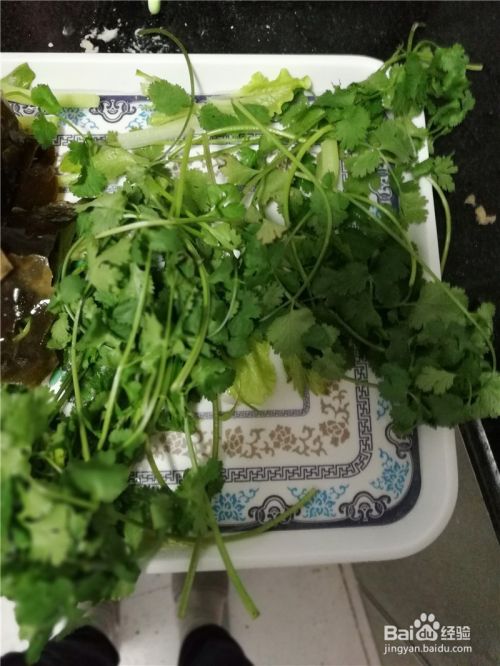 白菜洗净后切片待用,海带泡发好后且块待用,冻蹄膀肉待用,葱切段,香菜洗净待用