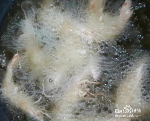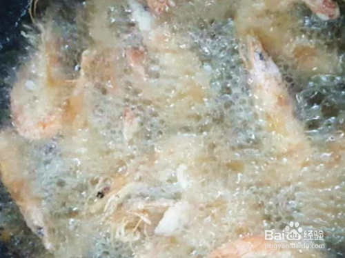 锅洗净蒸干放入食用油,锅中烧油5成热放入鲜虾,保持中火。