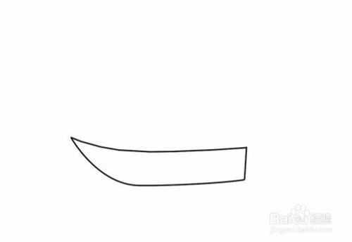先画船的轮廓,画一个右边是船尾是平的,船头是尖尖的船体。
