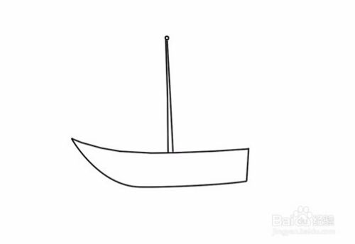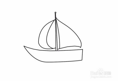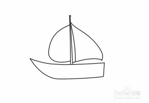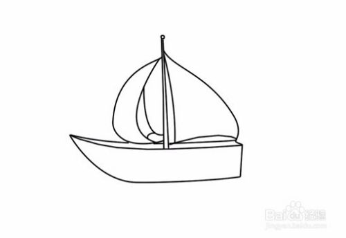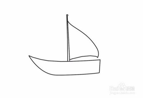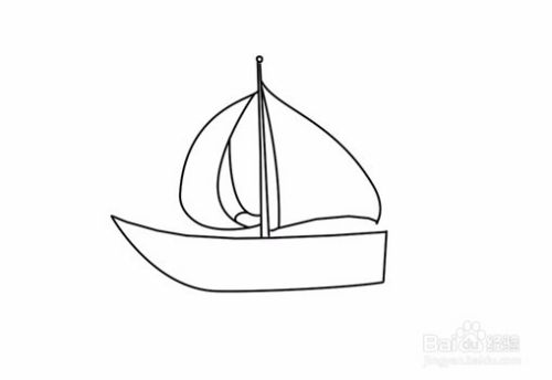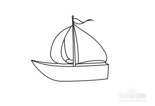 最后,在旗杆的顶部画上一面飘扬的小旗。这样就完成了帆船。