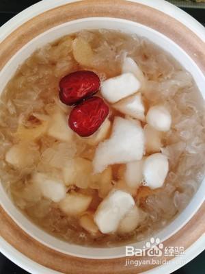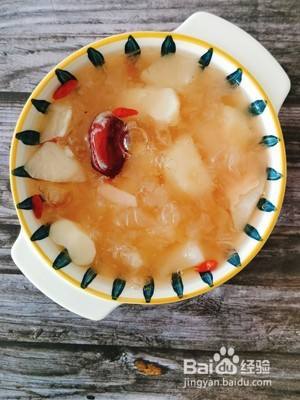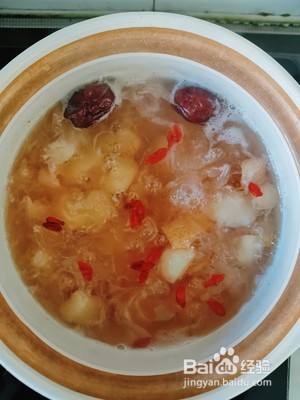 荸荠雪梨银耳汤的成品图。