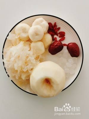 首先准备好需要的食材,荸荠和梨去皮,银耳泡发好摘成小朵。