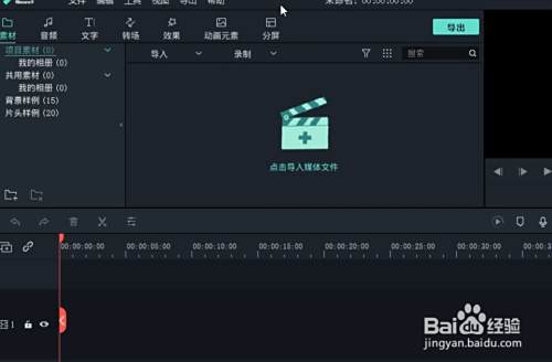 选择"素材"菜单,再点击"导入"->"导入媒体文件"。如图所示。