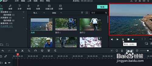 用鼠标选中视频,按住鼠标左键不放,将文件拖动到视频轨道编辑区。如图所示。