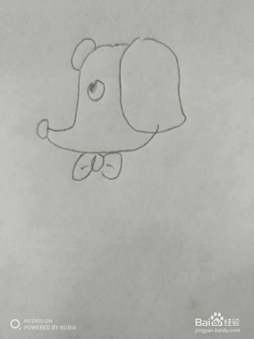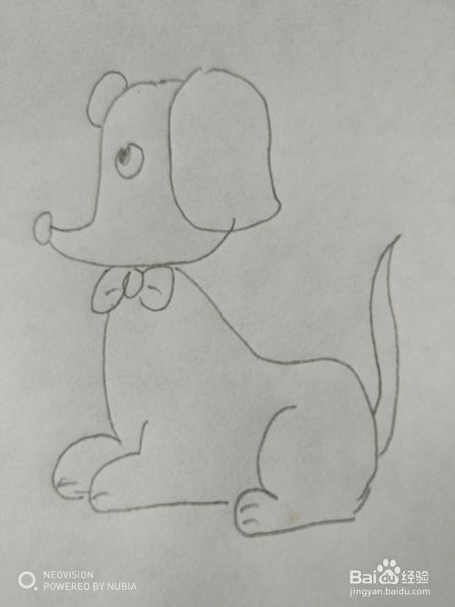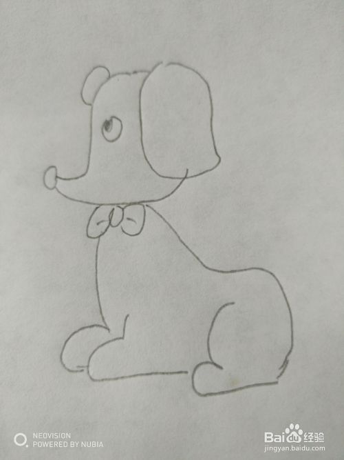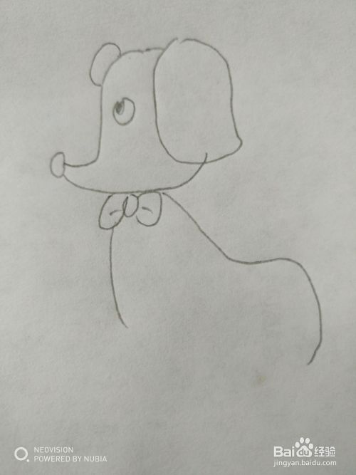 第四步,画出小狗的脖子上面的蝴蝶结。