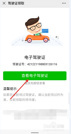 点进入后会弹出电子驾驶证信息,点击进入电子驾驶证,如下图: