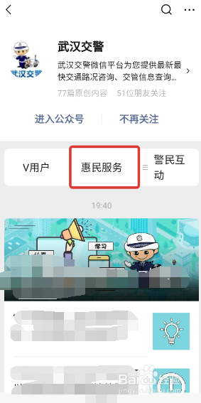 关注交警公众号,点击惠民服务,如下图: