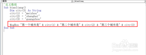 MsgBox "第一个城市是" & city(1) & "第二个城市是" & city(2) & "第三个城市是" & city(3)