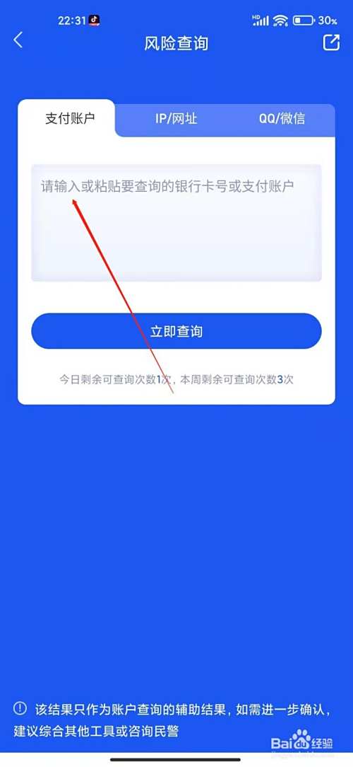 3、进入风险查询,填写对方支付宝账号点击查询即可