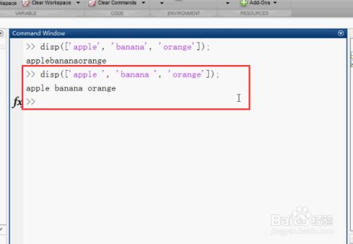 接下来我们将三个字符串放在disp函数中,如下图所示,disp函数将他们连接在了一起