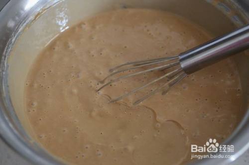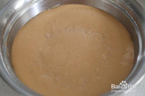 搅拌均匀至无颗粒,静置,等待发酵至两倍大表面起泡的状态