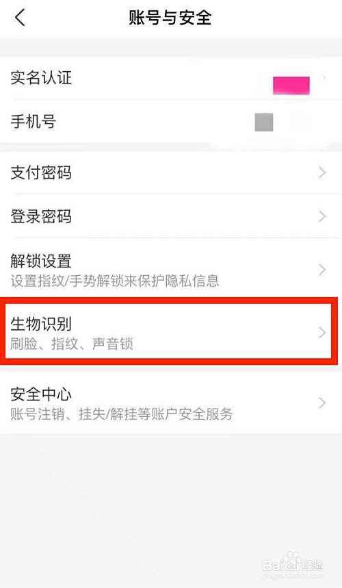 点击生物识别