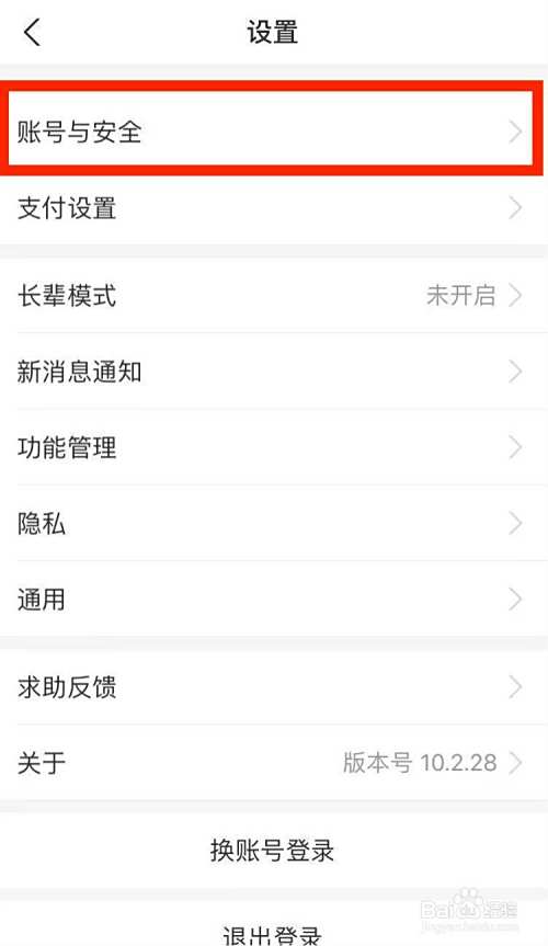点击账号与安全选项。