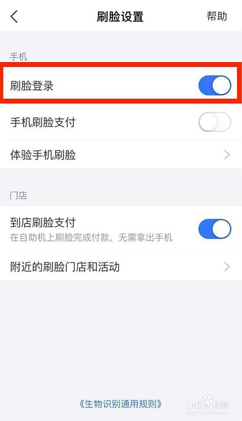 点击刷脸设置