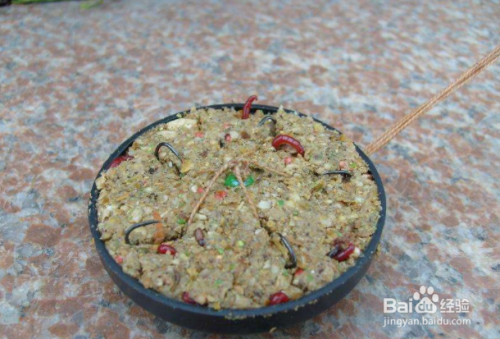 红虫蚯蚓饵饼,此时腥味饵饼在水中更受欢迎,但是也会招小鱼抢食哦。