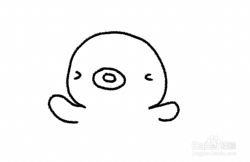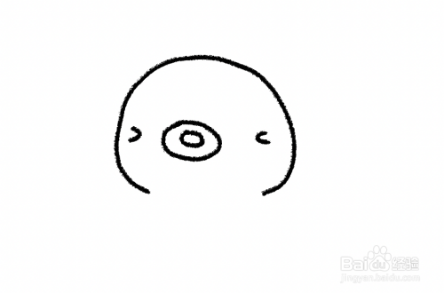 在椭圆里边画上眯起来的眼睛和圆圆的嘴巴。