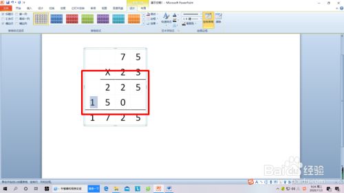 在小学数学乘法部分教学中,有时需要在Word或PPT中编辑乘法算式。你知道怎样在PPT2010中编辑竖式计算75乘以23,并且方便移动吗?下面和大家分享一下我的经验。
