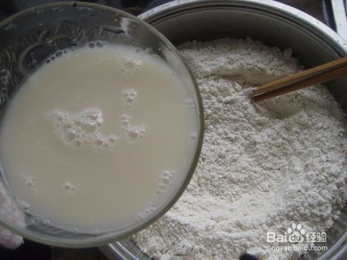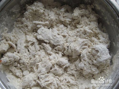 和面:发发酵粉水慢慢倒入面粉中,搅拌成絮状,柔成面团;