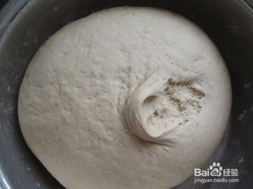 醒面:盆上盖上盖子,让面团发酵,大约30分钟左右看面团变大,大概是以前的两倍大,用手揪一块面,看有气孔就差不多了;