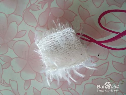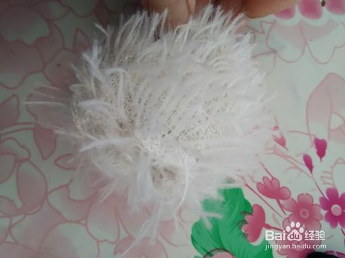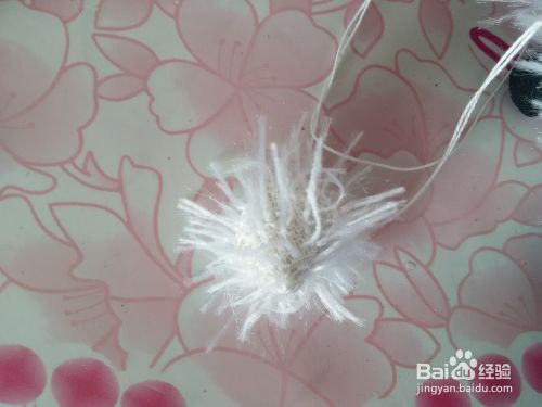 按图剪一块正方形布块做小羊的尾巴(如图),在布块里面包入填充物用针线缝成球形(如图)。