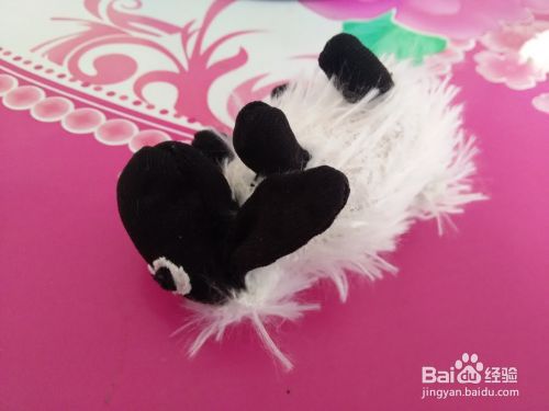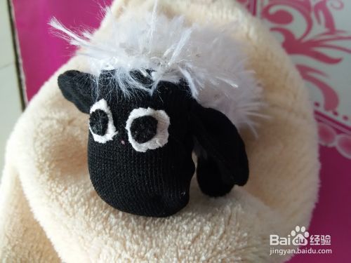 再把缝好的尾巴用针线缝在身体合适位置上(如图),小羊肖恩布偶就做好了,是不是好可爱!