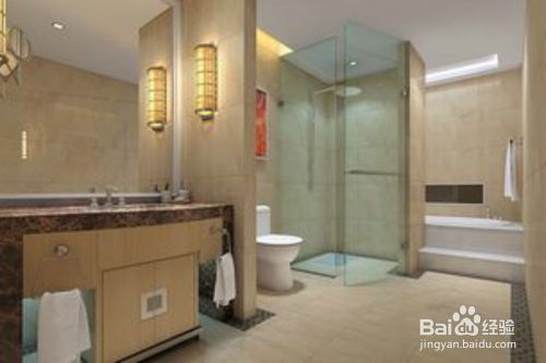 卫生间的设计需要很好的处理淋浴区、马桶区、收纳区的安排布置,设计安排得好,就能让人感觉舒适又好看。一般方式是淋浴房安置一角做成节省空间的圆形,洗漱台和马桶区挨着放两边。