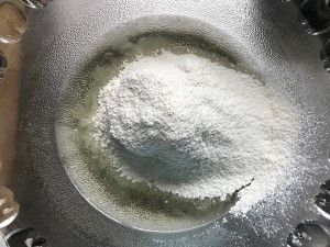 首先把蛋清蛋黄分离干净,蛋清中不要有一点蛋黄,这样会影响蛋清的打发状态(烘焙要注意的是所有用具都是无水无油的,我每次用完的厨具都洗净消毒,确保下次放心使用),迅速将过筛的低筋面粉和玉米粉倒入油中