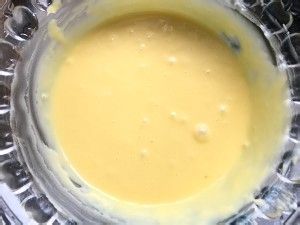 用手动打蛋器搅拌至无干粉状态,在加入牛奶、蛋黄搅拌均匀