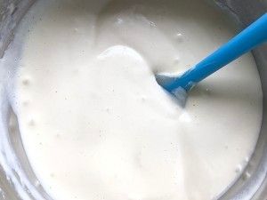 打发好的蛋白霜分三次加入到蛋黄糊中,每加入一次就要拌匀一次,要用橡皮刮刀采取J字翻拌手法,不要画圈乱搅