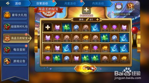 点击海盗王的的秘宝图标,打开海盗王的秘宝活动界面