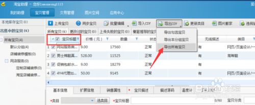 打开淘宝助理,登录老店的账号,然后打开宝贝管理,点左边出售中的宝贝,勾选全部,再点导出csv