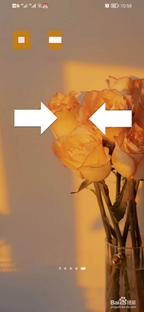 进入手机桌面,两指向内捏合或者长按桌面空白处,打开桌面设置。