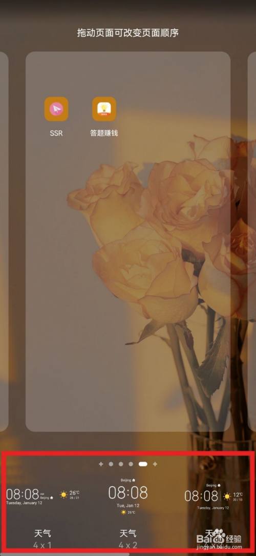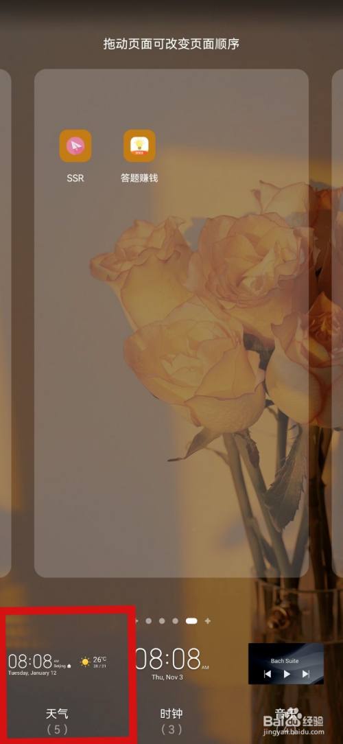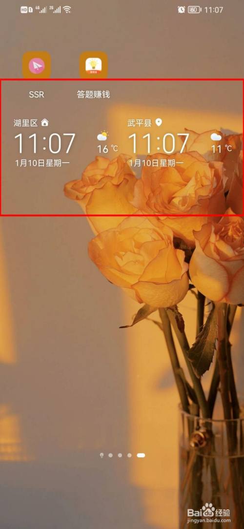 选择桌面时间和天气样式之后,返回我们手机桌面,就可以看到已经出现了时间和天气。