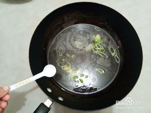 锅中放少许底油爆香葱姜,葱姜爆香后放入水,加入适量食盐