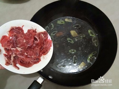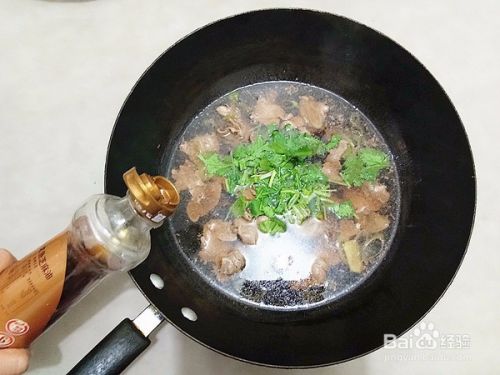 加入酱油,大火烧沸后放入羊肉片汆烫