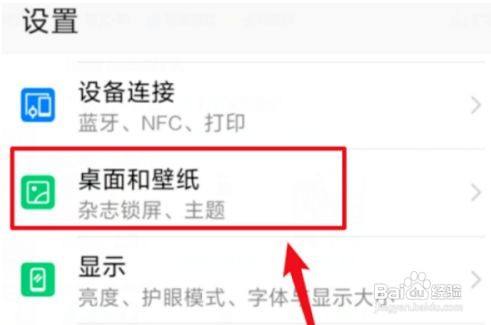 打开设置页面之后,选择点击“桌面和壁纸”选。