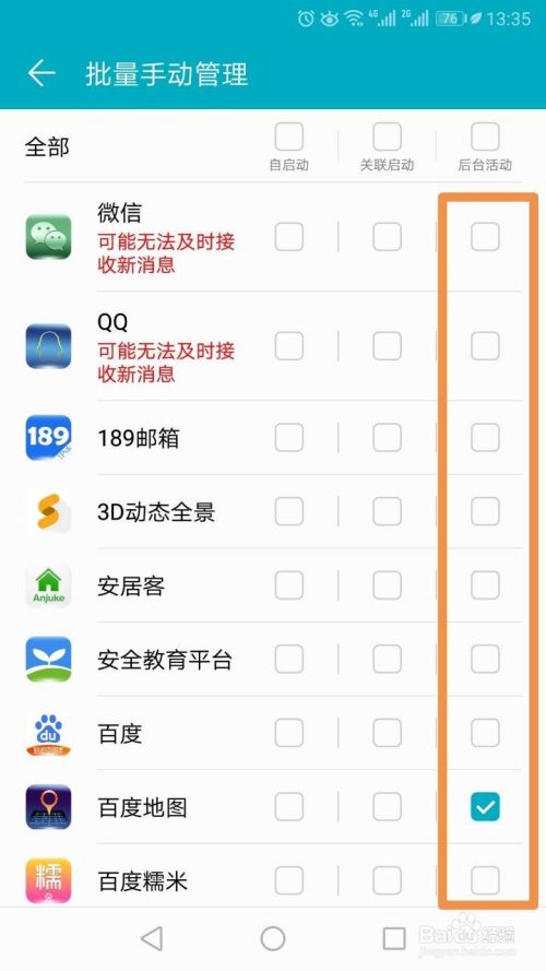 需要持续在线的应用不要取消,如要用百度地图导航时。