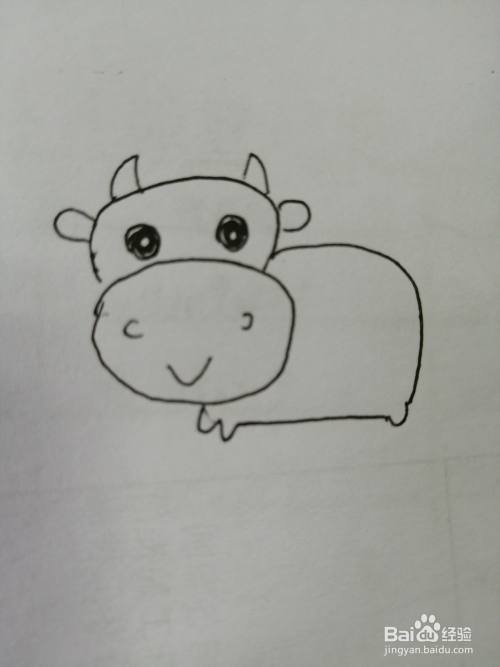 第五步,接着继续画出可爱的小牛的弧线的小嘴巴。