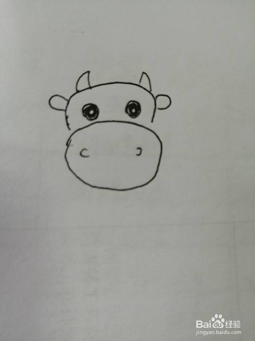 第四步,然后把简笔画可爱的小牛的两个小鼻孔画出来。