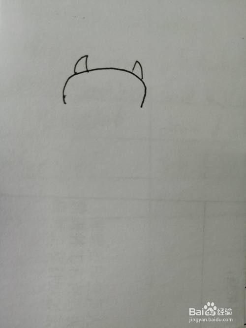 第二步,接着画出简笔画可爱的小牛的两个可爱的耳朵。
